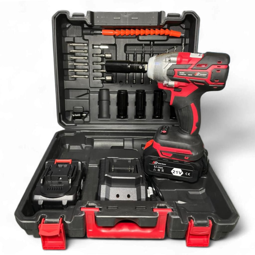 Pistola de impacto Stardom 2 baterias 21v 300nm 5 tubos kit completo
