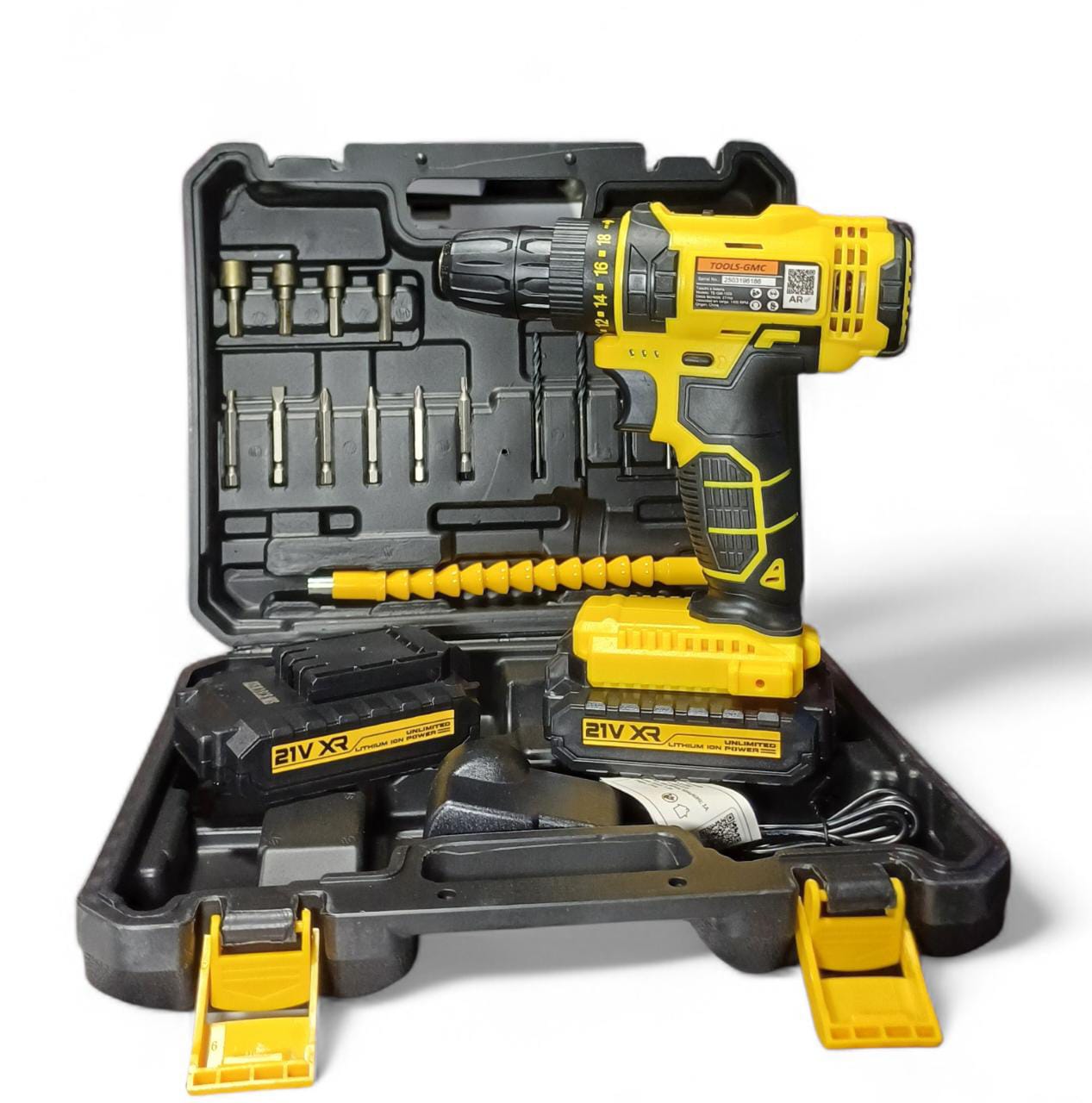 Taladro atornillador 2 baterias 21v kit completo; puntas, mechas y alargue